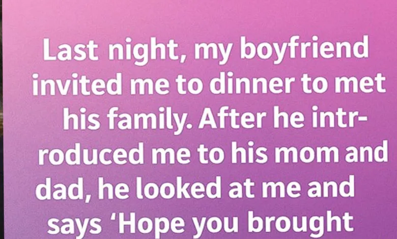 When my boyfriend invited me to dinner with his family, I spent the entire afternoon rehearsing polite greetings, practicing smiles, and agonizing over what outfit would make me look both mature and approachable. The moment we stepped inside, I was met with warm lights, the smell of roasted vegetables, and the sound of laughter coming from the dining room. His parents greeted me with enthusiastic smiles, but before I could relax, my boyfriend jokingly said, “Hope you brought your wallet.