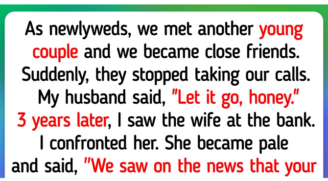 As newlyweds, we met another young couple, and we became close friends. Then, suddenly, they stopped taking our calls. My husband said, “Let it go, honey.” 3 years later, I saw the wife at the bank. I confronted her. She became pale and said, “We saw on the news that your husband had robbed his employer. We didn’t want to be associated with you anymore.”