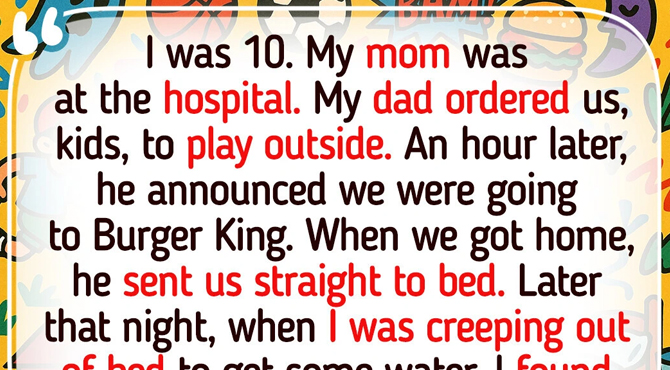 The first time that happened was when I was about 10, my dad ordered us kids outside to play while he made dinner. He came out of the house an hour later and announced we were going to Burger King. When we got back home, he sent us straight to bed.
