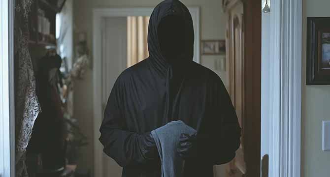 There, standing in my hallway, was the intruder; dressed the same as before! I grabbed my phone with trembling hands and called the same police officer I’d dealt with the other day.