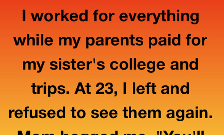 I worked for everything while my parents paid for my sister’s college and trips. At 23, I left and refused to see them again. Mom begged me, “You’ll regret it one day.” Five years later, Mom died. I went to the funeral but froze when I saw my sister. She looked… broken.