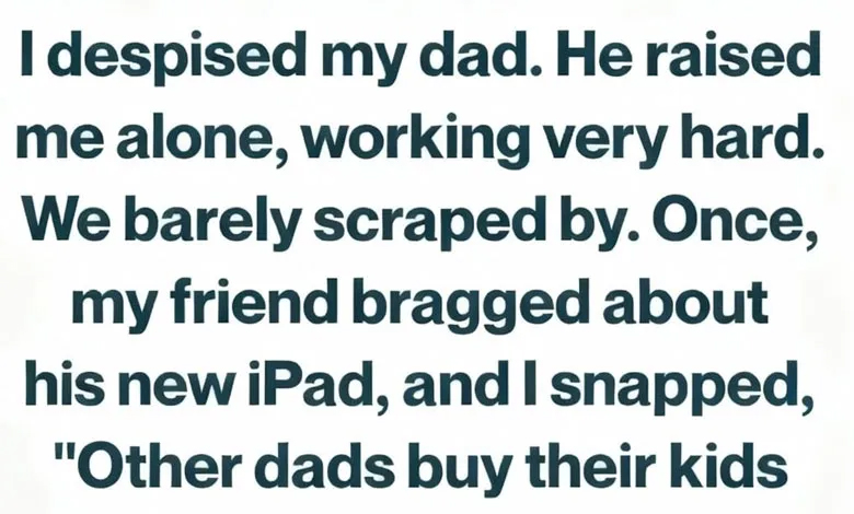 I despised my dad for most of my childhood, even though he was the only parent I had. He raised me alone and worked endlessly, yet our life always felt like a struggle. We lived paycheck to paycheck, counting every dollar, and I grew up painfully aware of what we lacked compared to others. At school, I watched friends show off new gadgets, clothes, and vacations, while I learned how to pretend I didn’t care. One day, when a friend excitedly talked about his brand-new iPad, something inside me snapped. I went home angry and hurt and said words to my father that still echo in my mind—accusing him of failing me because he couldn’t give me more. I saw his face fall, saw the pain he tried to hide, but pride kept me from apologizing.