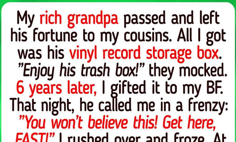 My rich grandpa passed and left all his fortune to my cousins. All I got was his old vinyl record storage box. “Enjoy his trash box!” they mocked me.