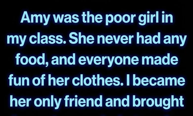 In elementary school, Amy sat quietly at the back of the classroom, trying to take up as little space as possible. Her clothes were always the same few outfits, carefully washed but clearly worn, and she often arrived without lunch. Other kids noticed, and some were unkind about it, laughing or whispering when they thought the teacher wasn’t listening. I didn’t know how to stop them, but I knew I couldn’t join in. Slowly, without making a big deal of it, I started sitting next to her, sharing notes, and bringing extra food from home. We didn’t talk much at first, but companionship grew in the small moments—quiet smiles, shared pencils, and the comfort of not being alone.